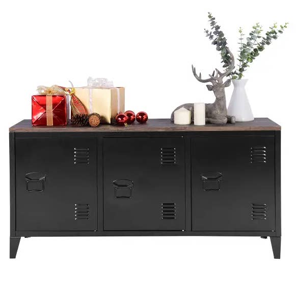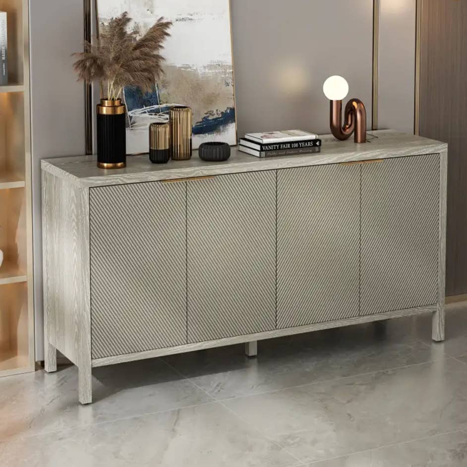 Fluted 2-Door 3-Drawer Sideboard with LED Lights – Black