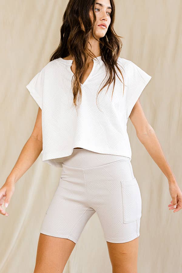 - Style No.: P6288 Effortless style meets comfort with the ultimate summer staple. Featuring an adjustable drawstring and elastic waist, these shorts offer a perfect fit. Paired effortlessly with matching tops, they are ideal for lounge days, casual outings, picnics, brunch, and beach fun. Crafted from luxurious cooling scuba fabric, they bring comfort and style together seamlessly. Features: - Modal Polyester Spandex Fabric - Scuba Fabric - Adjustable Drawstring - Elastic Waist - Easy Pull-On Shorts - Tulip Scallop Side Hem Detail - Side Pockets Matching Top : T9894, T9872, T9897 Also Available in Plus/Curvy Size: 1XL-2XL-3XL Style# P6288PL Model is 5'9" and wearing size Small. Fabric: 48% Modal, 45% Polyester, 7% Spandex IMPORT