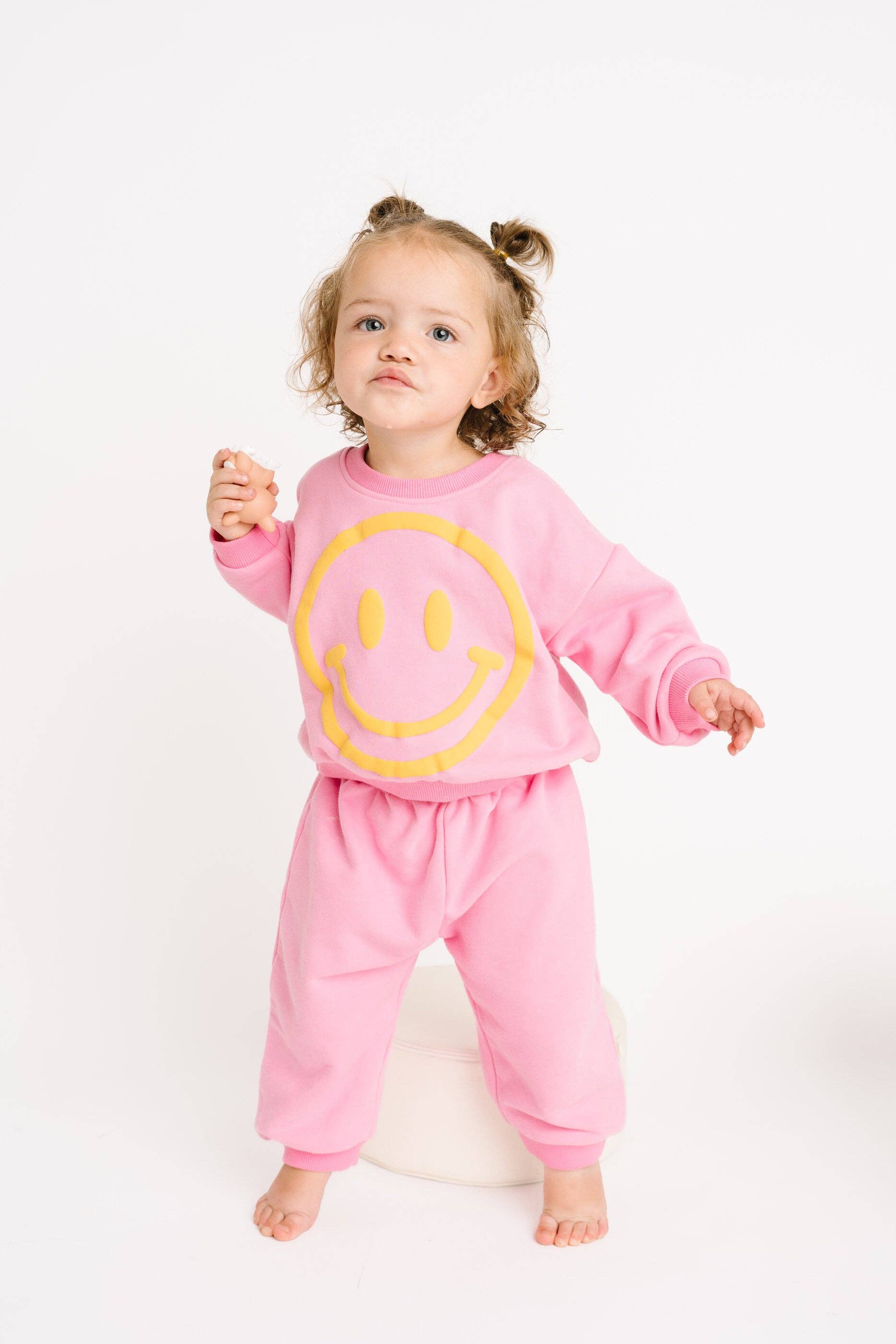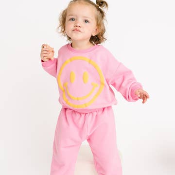 Bring on the good vibes with this totally groovy two-piece set! Inspired by retro style, this set radiates those feel-good, happy vibes that never go out of style. Available up to 9Y, this easy-to-wear set will quickly become your little one's favorite go-to! * Premium Fabric: Our signature silky cotton, loved by customers for its smooth feel, breathability, and long-lasting shape. * Fabric Composition: 95% Cotton and 5% Spandex for a soft, flexible feel that moves with them. * Fit: True to size with a relaxed, comfortable cut. * Long Sleeve Top: Designed with a classic, relaxed fit that allows for easy movement and everyday comfort. * Pants: Elastic waistband for easy wear and a secure, comfy fit. Cuffed ankles provide a clean, finished look. * Faux Drawstring: A stylish detail at the waist without added bulk. * Everyday Wear: Perfect for cooler days, whether lounging at school, or out for casual activities. * Care Instructions: Cold wash with colors. Tumble dry on low or hang dry.
