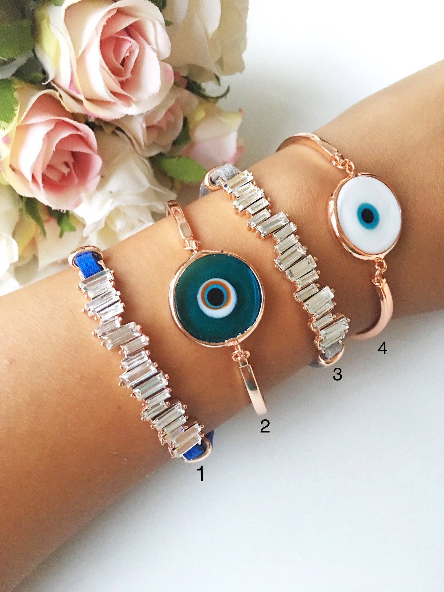 Evil Eye Bracelet, Blue Glass Pandora Charm, Evil Eye Cuff Bracelet, CZ bracelet, Blue Evil Eye, Authentic Pandora Bracelet, Gemstone Clover🌟 There are 5 styles. Please choose the style during checkout. Please choose your style during checkout! 🌟 The combination is GOLD color. **The bracelet has 316L Stainless Steel material, therefore it is tarnished resistant!! You can swim with the bracelet! This evil eye bracelet is totally handmade.