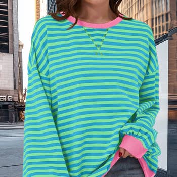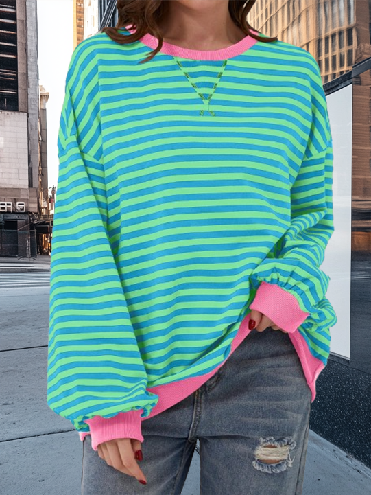 Stripe Oversized Contrast Trim Pullover Sweatshirt