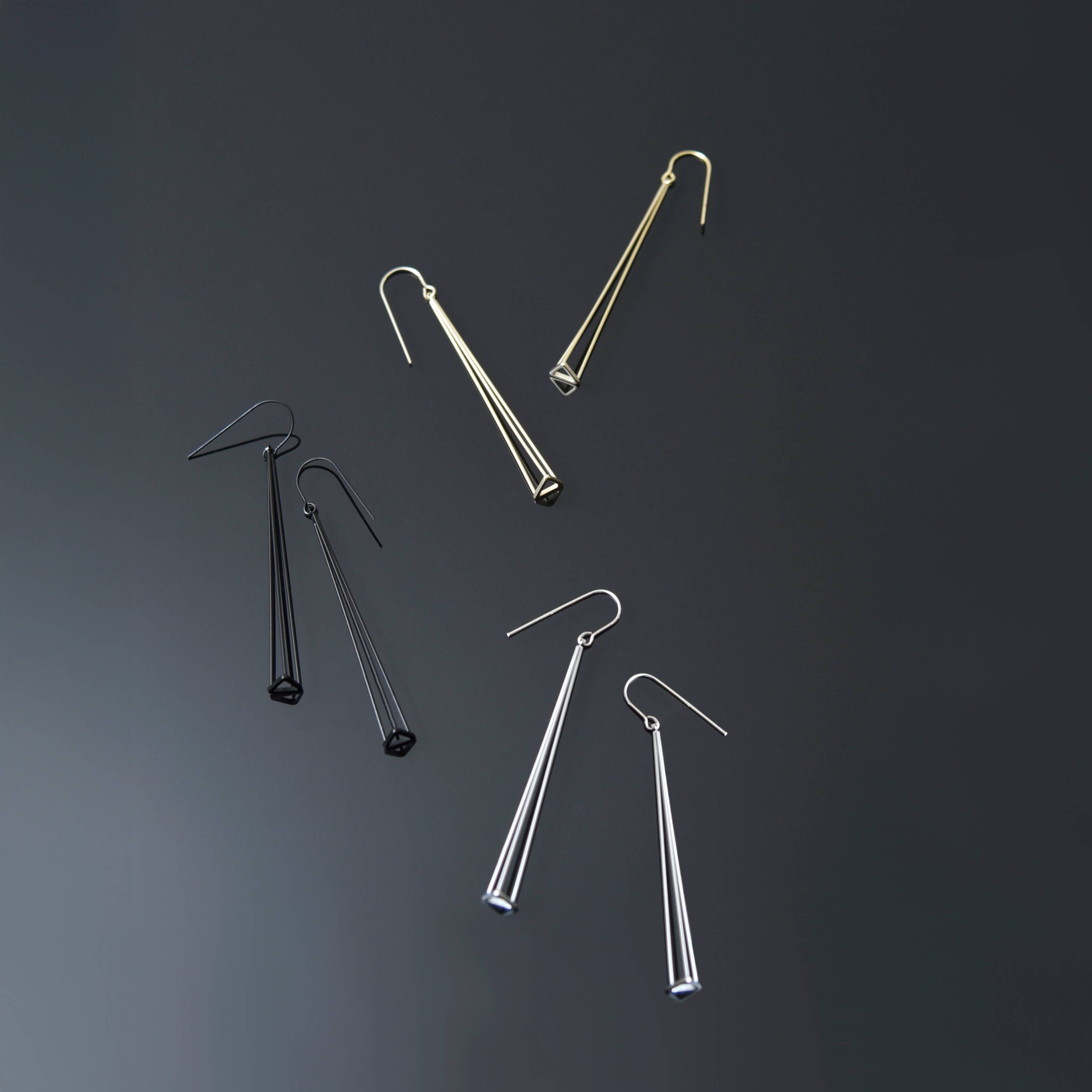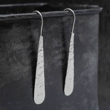 The Reed Drop earring is a mixed-metal classic in the making. The Reed Drop is sleek, simple and combines silver and 14k yellow gold fill in a hammered, textured flat drop, counterbalanced by a sleek swoop of an elongated 14k yellow gold fill earwire (picture to be updated soon). Each drop is about 2 1/4" long, with the overall earring length being about 2 3/4" high. As always, all Shepherd's Run Jewelry is handmade in our Somerville, MA studio. Wholesale lead-times are generally 2-3 weeks depending on size of order and will be confirmed at time of order.