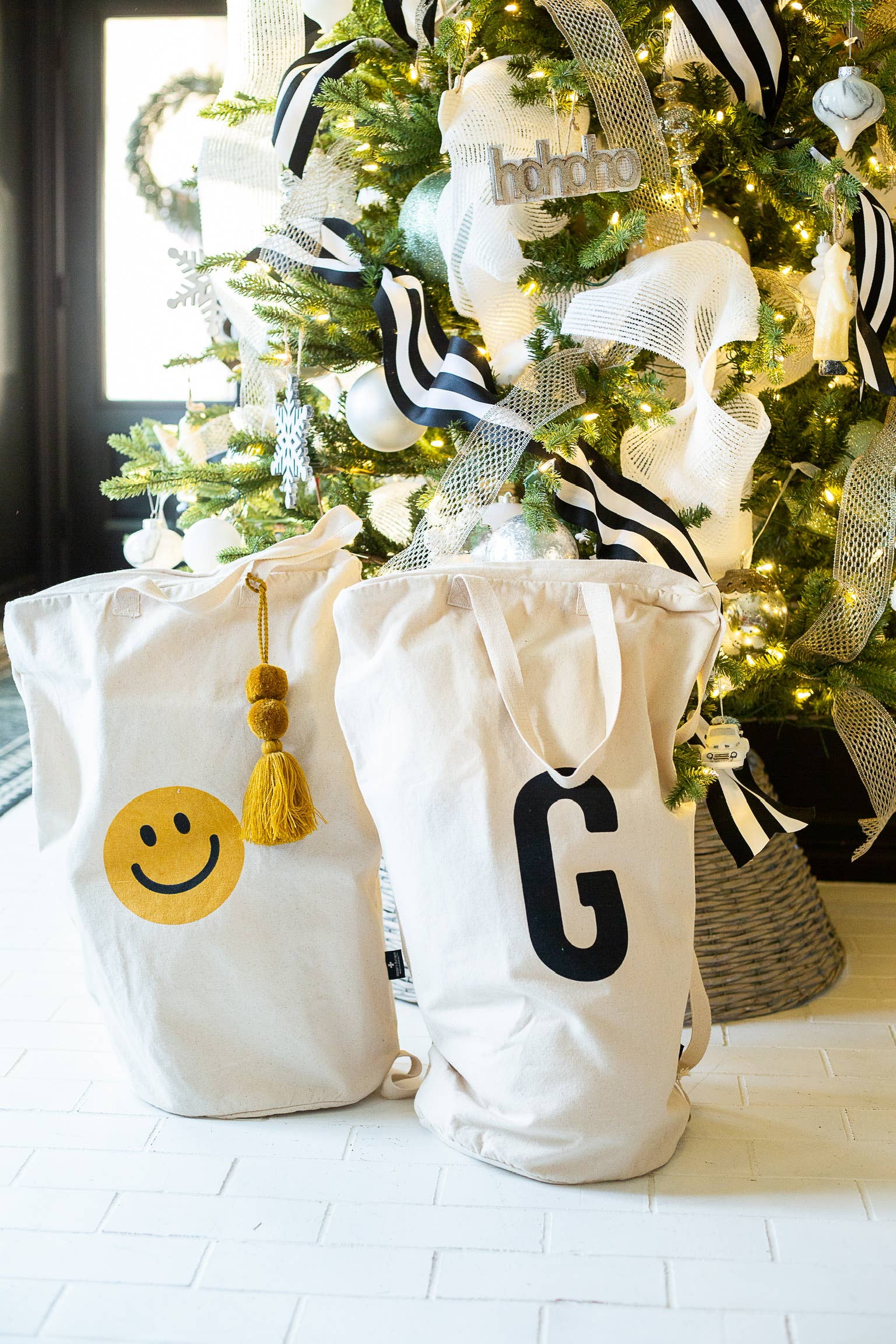 Simplify every day with laundry bags that double as gift bags and storage bags. Long across body cary strap plus two straps on top for easy carrying. Cotton canvas. Washable. Measurements: 26 inches tall 17 inches wide 10.5 wide bottom