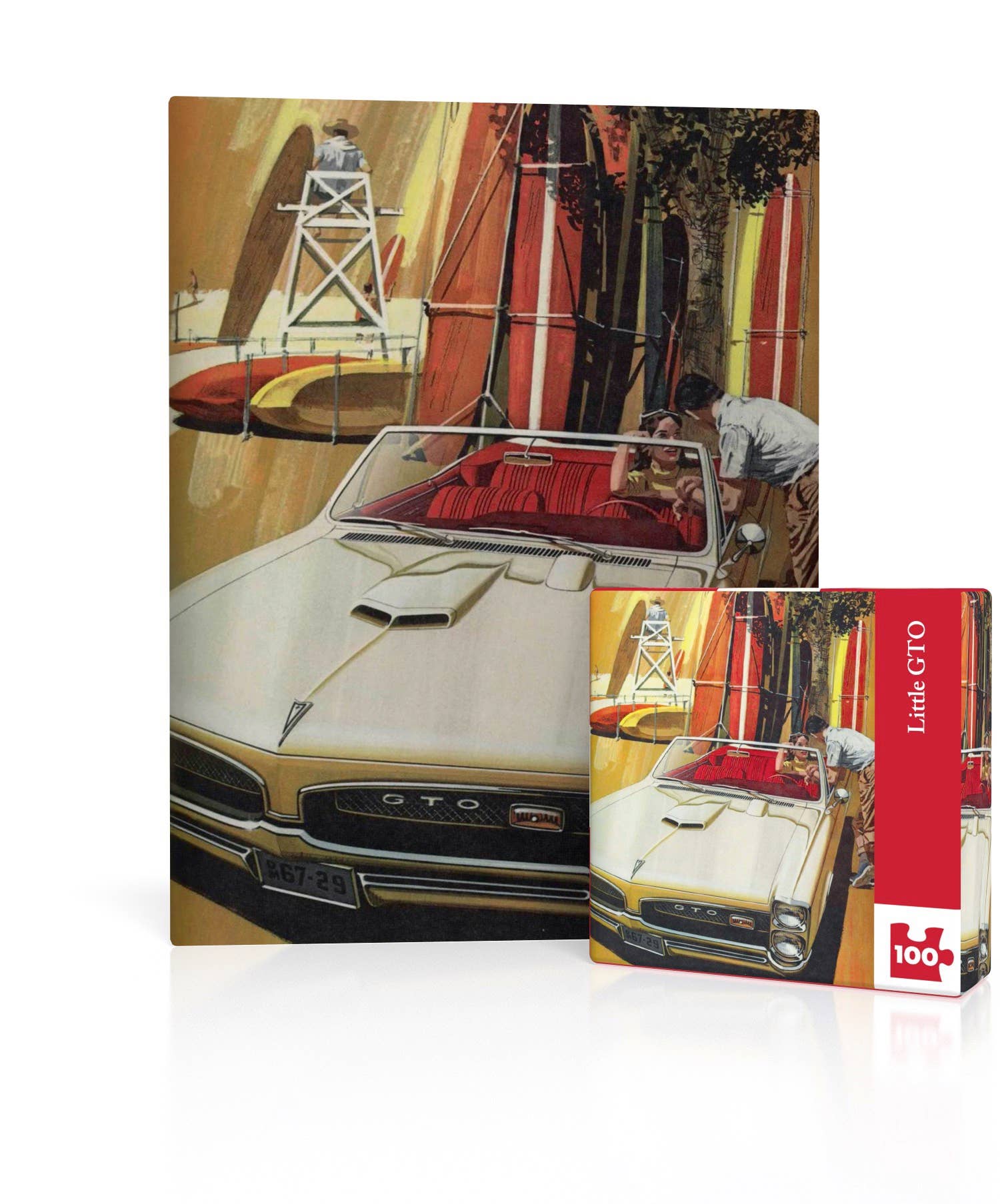 Capture the golden age of coastal luxury with Catalina Cruise, a 100 piece mini puzzle featuring vintage General Motors art. This striking scene showcases a bright red 1969 Pontiac Catalina Convertible parked on a sunlit pier, where a stylish, jet-setting couple prepares to embark on a scenic coastal drive. In the background, a gleaming white luxury yacht awaits its passengers, evoking the carefree elegance of mid-century travel. With its crisp retro aesthetic and nostalgic charm, this compact puzzle is perfect for classic car enthusiasts, vintage ad lovers, and puzzle collectors alike. A stylish and satisfying snapshot of Americana at its most glamorous. 100 Piece Jigsaw Puzzle Finished Puzzle Size: 8"x8" Linen Style Finish to reduce glare Made in USA Recommended Age: 10+ Years