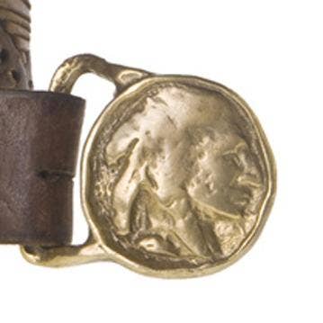 Genuine cowhide leather exterior Leather lining Round brass buckle with light gold finish Available in two sizes: S/M 92 cm and M/L 98 cm