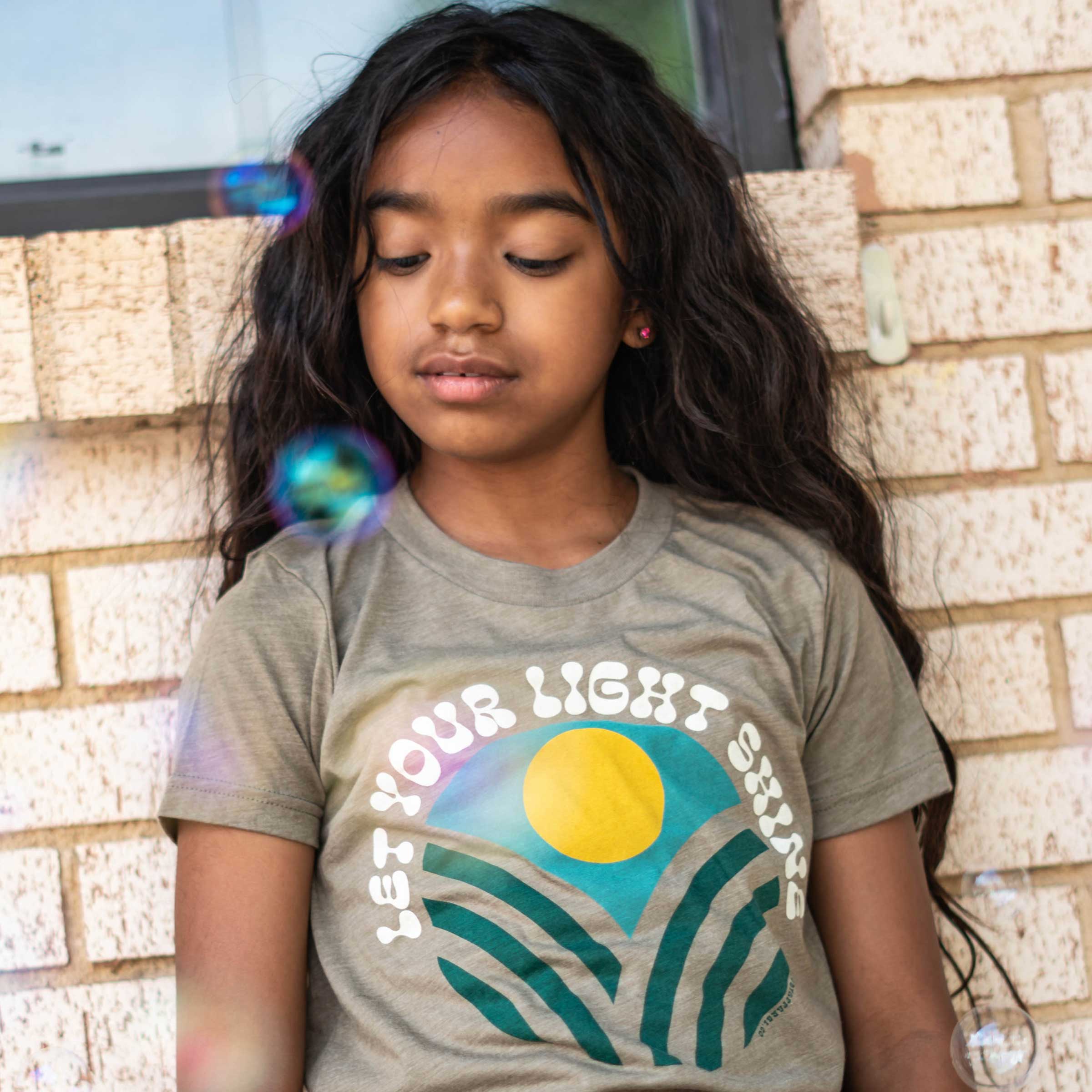 Let Your Light Shine. Super soft triblend tee (50% polyester / 25% cotton / 25% rayon). Youth tees fit to the below sizes: YS - 6-8 YM - 9-10 YL - 11-12 All of our apparel is hand printed in our shop using only high quality, non-toxic inks!
