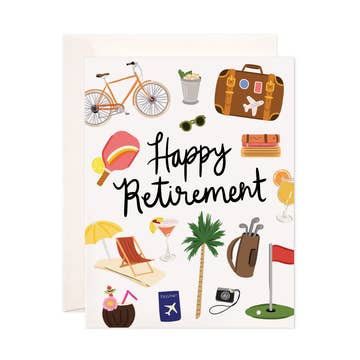 Celebrate retirement in style. Interior of card is blank so you can fill in whatever you like! Each card comes with a kraft envelope. Card Specs: • One A2 folded card ( 4.25ā€ W x 5.5ā€ L ) • Blank inside • Matte finish | 60 lb 230 gsm cardstock • Recycled kraft paper envelope included • Packaged in a clear sleeve to help prevent damage • Designed and printed in Phoenix, AZ *Colors in person may be different to what is on screen