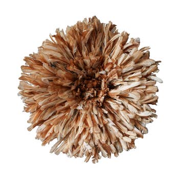 Our Juju hats are handcrafted by the Bamileke ladies in West Cameroon. We work with a cooperative group of 20 Bamileke master craft women to present to you the best hats. Juju hats serve as images of prosperity and holiness in Bamileke culture from West and Northeast Cameroon. Quills represent excellence just as delicacy. Juju hats were customarily crown worn by royal dancers during functions held by the Chief. Juju hats are made from regular or colored chicken plumes sewed into a raffia bushel making an intricate hood that was sacred to the Bamileke. Numerous Bamileke customs stay flawless and have passed from one age to another as a wellspring of social character and pride. The blend of strength, excellence and astonishing elaboration characterize the illustrious services of the Bamileke epitomized in the intricate padded crowns which today aid in decorating rooms all throughout the planet offering everybody a touch of glory that was once reserved to royalty.