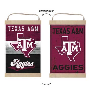 Put a little team spirit on your walls with this unique reversible hanging banner. Just flip the banner around to feature your team spirit in a new way. Two designs for the price of one! Perfect on any door, wall, or hanging from any knob or hook. Hangs with jute ribbon. MADE IN THE USA. - Officially licensed.