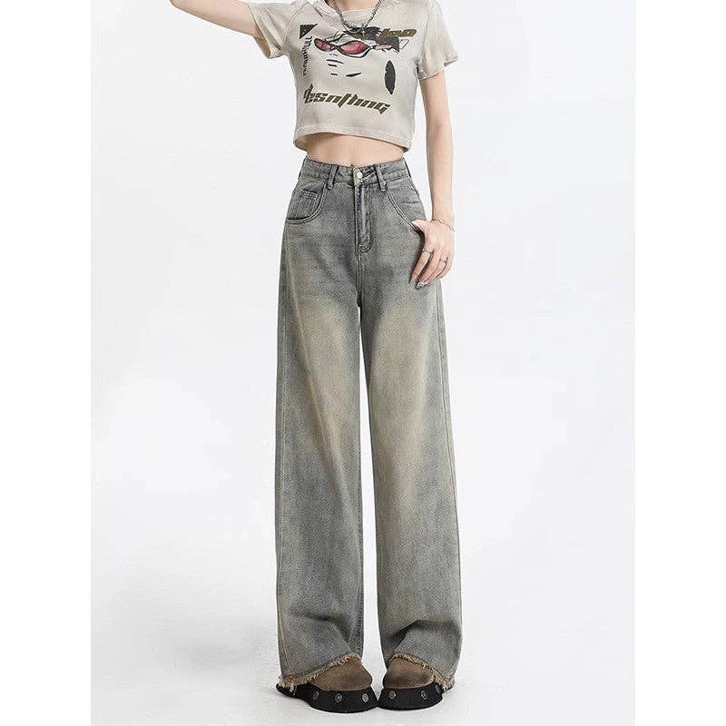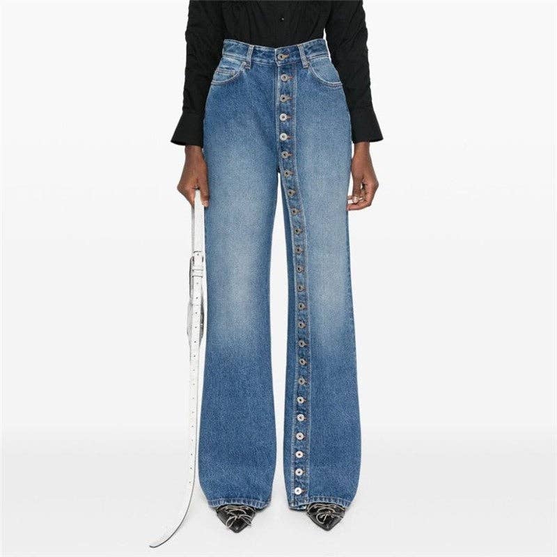 Wholesale Button High-Waisted Straight Leg Jeans