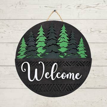 Accent your front door with the cutest door-hanger Laser cut Approximately 16” round with 2 holes at the top. Cut out of 1/4" wood round with 1/8” mdf/wood overlays(depending on design) Can be purchased as a DIY Kit or Finished Door-hanger. DIY Kits come unpainted, unassembled, wrapped. Wood pieces only. 2 holes will be drilled at the top so your customer can add ribbon or string of their choosing. Ribbon or string not provided. DIY kits will come with instructions. Finished Kits come ready to hang and sealed. Ribbon/String will vary depending on stock on hand. These are custom made and each finished one may differ slightly being hand-painted. *We are changing out the size of holes on our rounds to be smaller. See last picture for reference. We will updating diy kit/finished pictures as soon as we can. The rounds will still be approximately 16”, however the designs will now be pretty close to flush with the bottom of the round. No spacing around edges of overlays.*