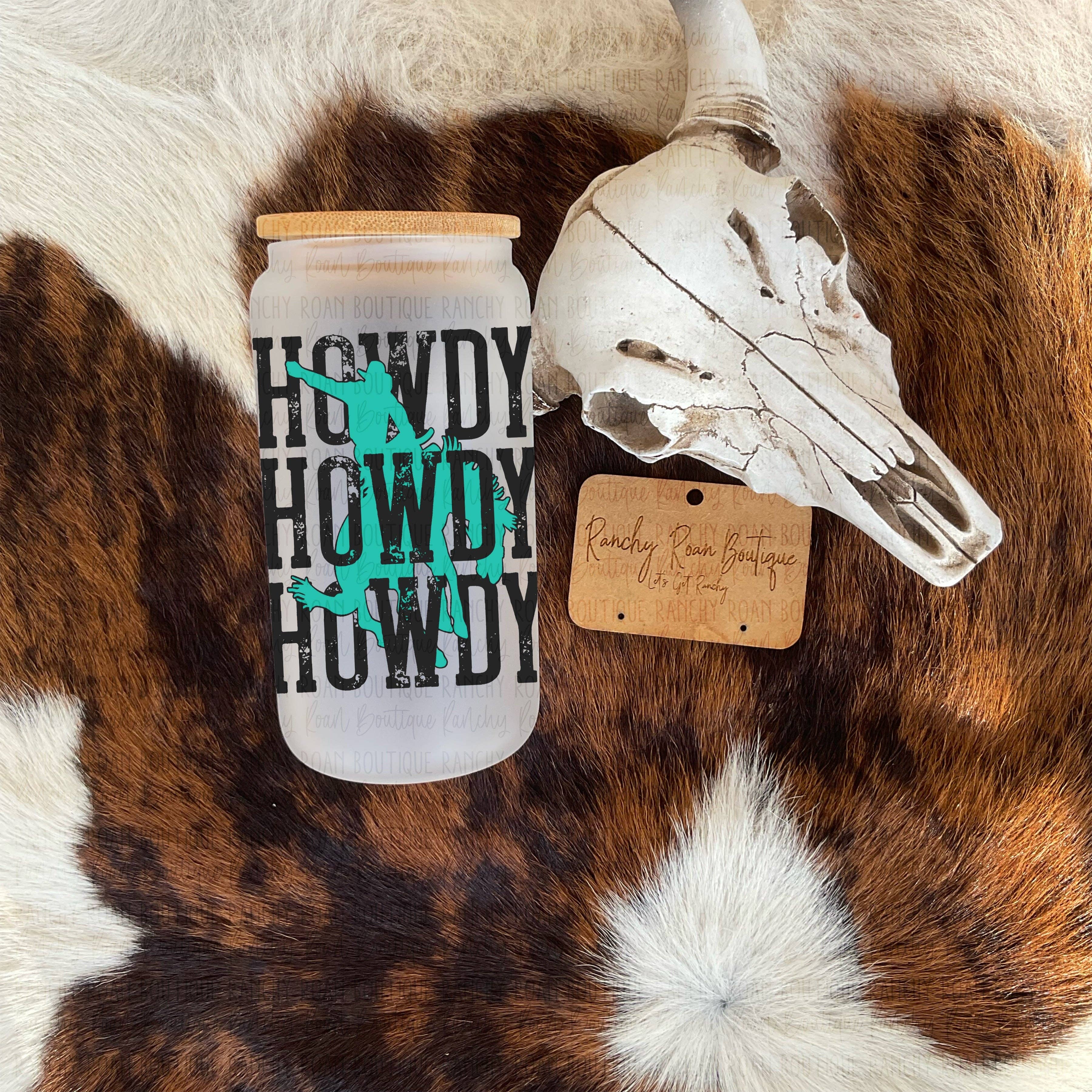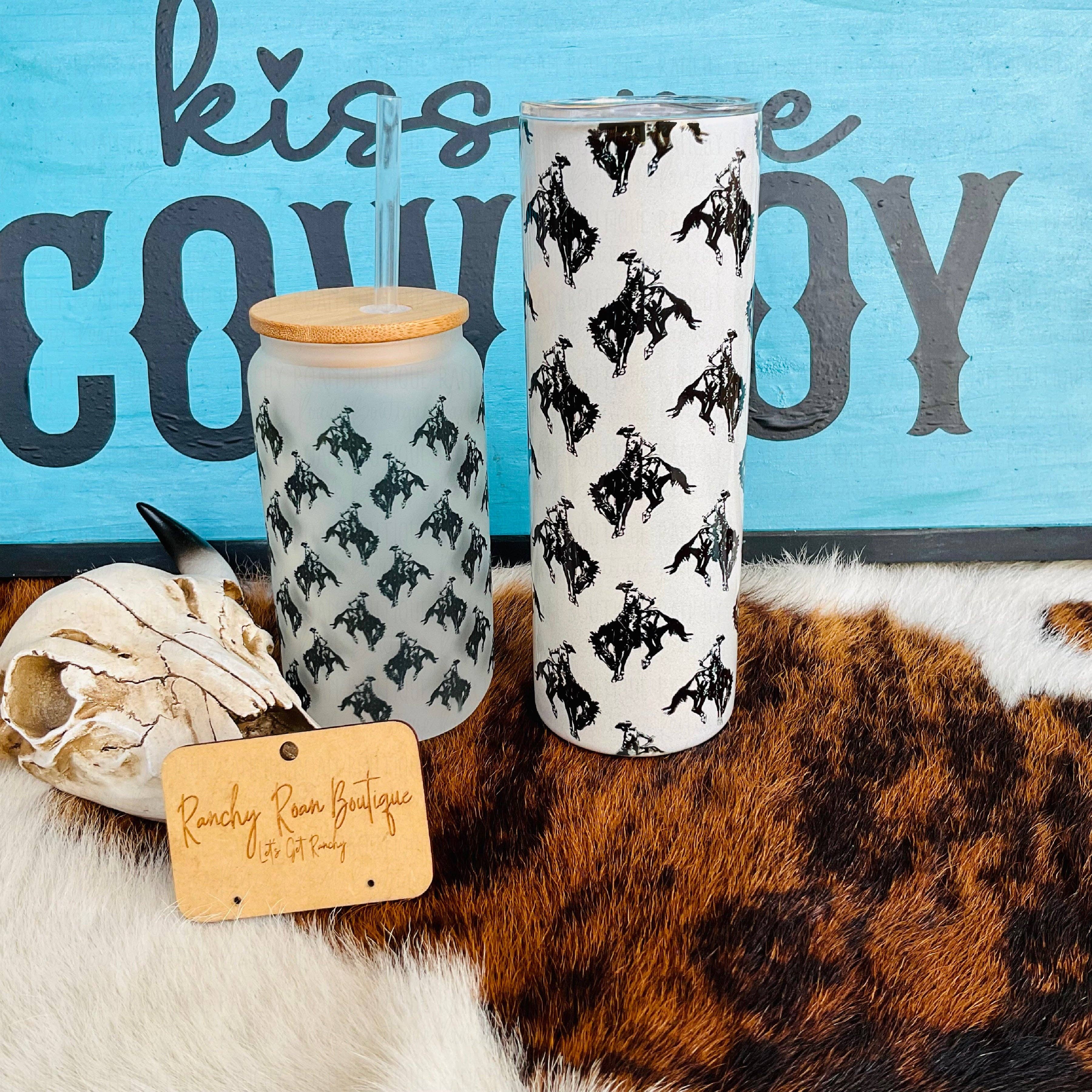 Add a little sass to your sips with the Rodeo Barbie frosted glass can. This 16oz tumbler features bold turquoise and hot pink text layered over a stylish scattered cattle brand background. It’s the perfect mix of gritty Western and glam Barbie for your boutique shelves. Exclusive Design * 16oz frosted glass can with bamboo lid and reusable straw * “Rodeo Barbie” design in turquoise and neon pink * Western cattle brand background for an authentic ranchy vibe * Ideal for iced coffee, teas, cocktails, and on-the-go drinks * Great gift item or impulse buy for Western-loving customers A standout piece your customers will want to show off at every rodeo, market, or girls’ night.
