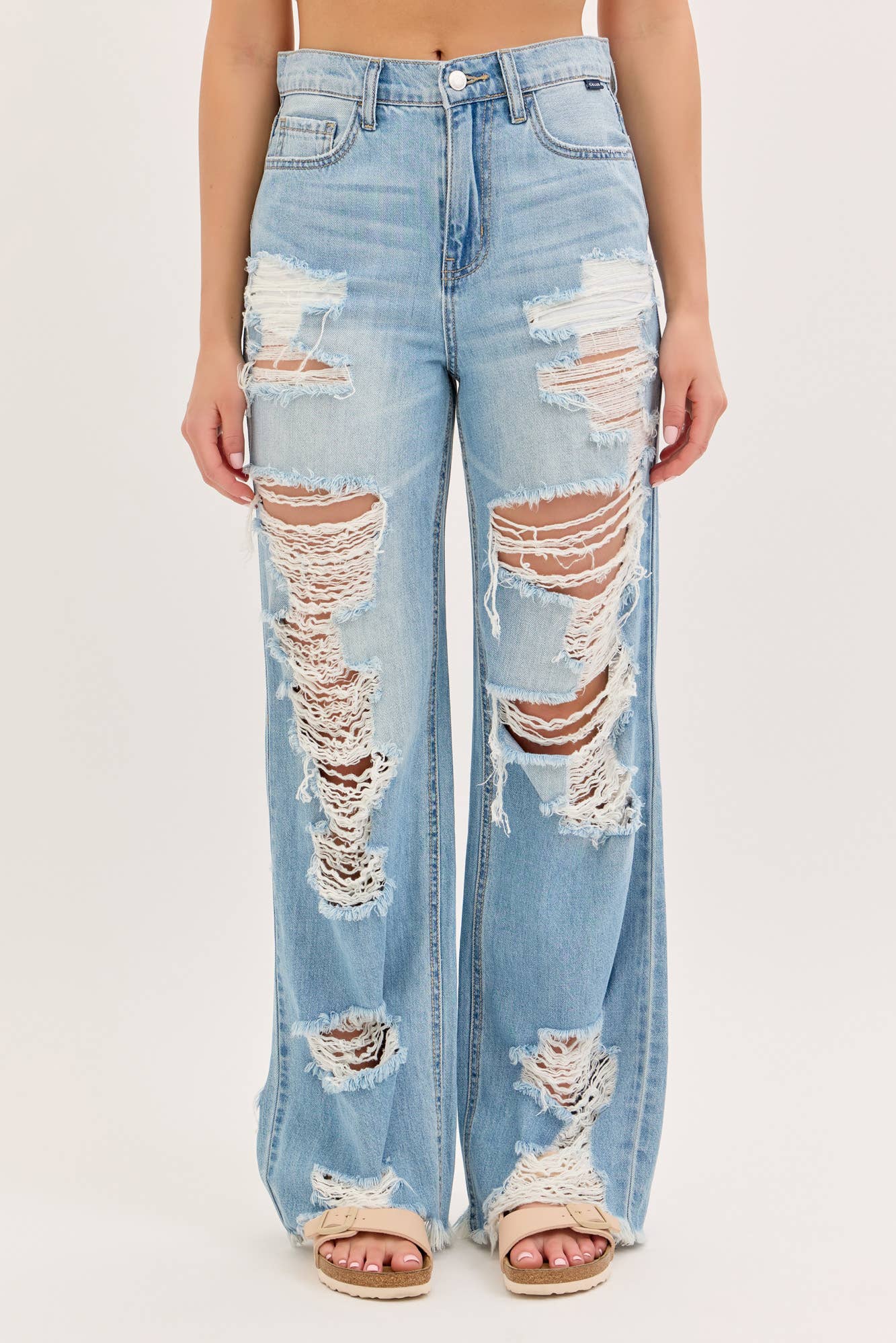 JAZZ-020 HIGH WAISTED DISTRESSED BELL BOTTOMS WOMEN JEANS