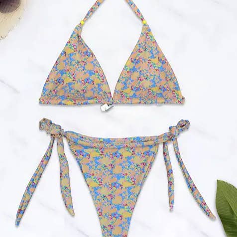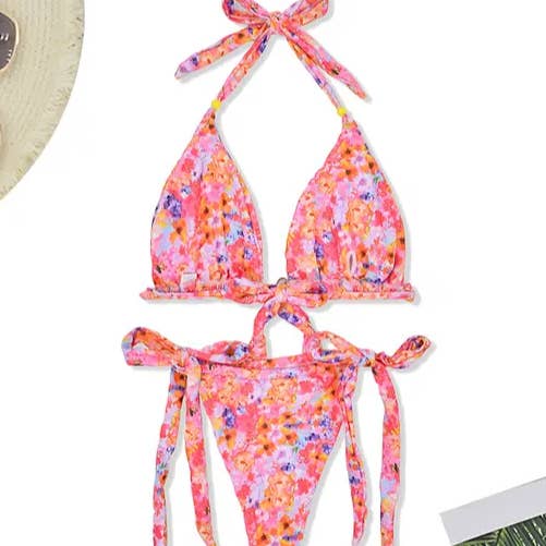 Sexy Floral Bikini Split Swimsuit_CWMW0151