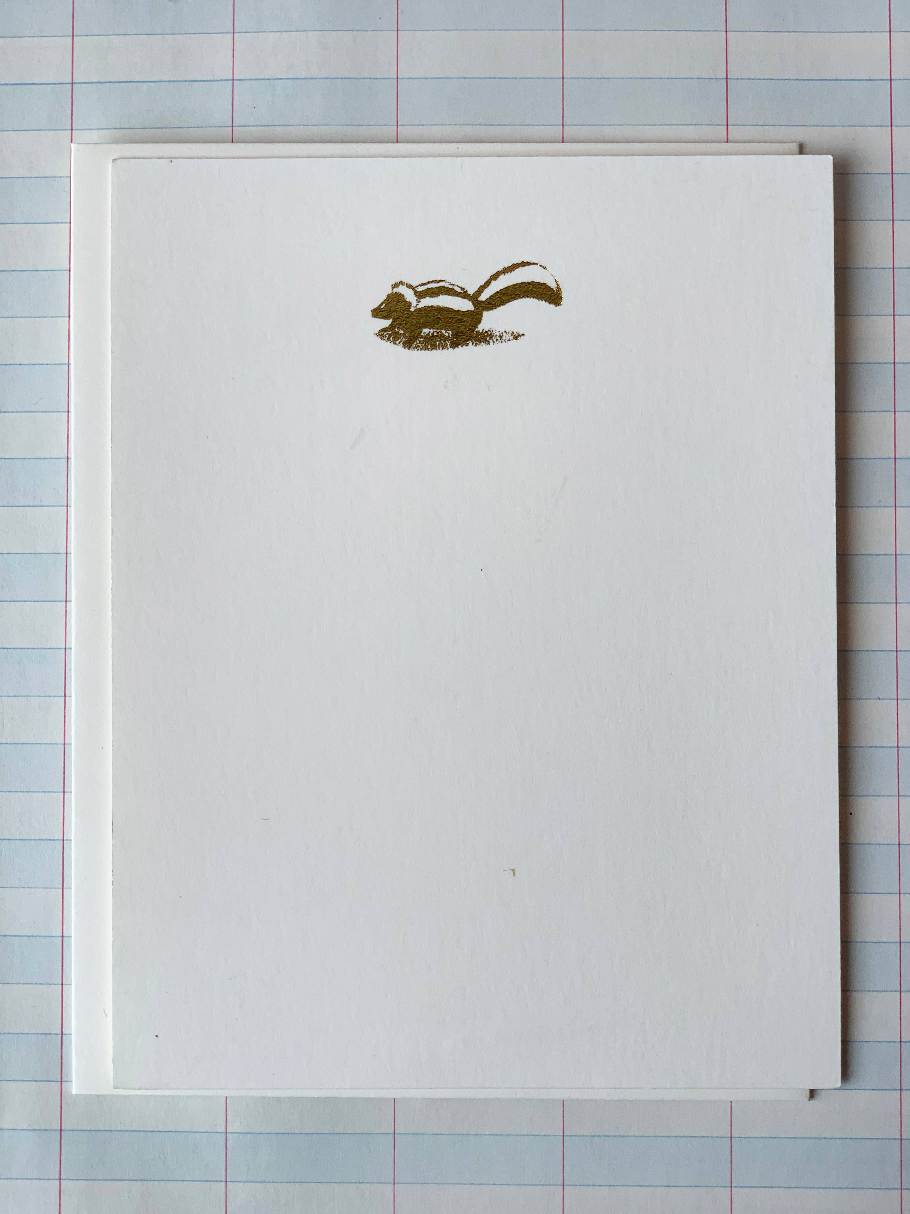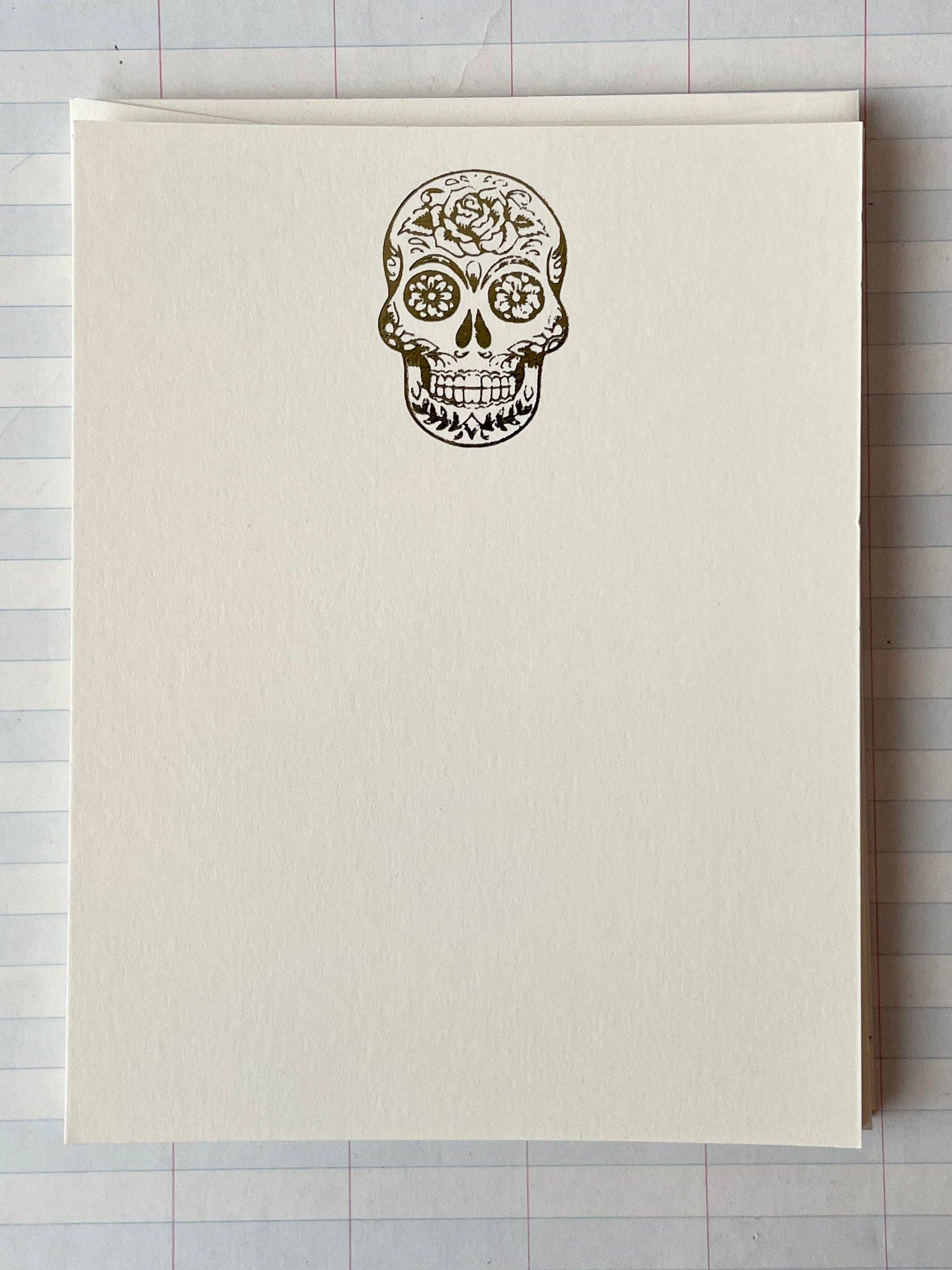 Process: foil-pressed Card size: flat 4.25"W x 5.5"H Paper: #110 cardstock Color: creamy white Envelope size: a2 Envelope color: creamy white Quantity: set of 8 Minimum: 3x per design