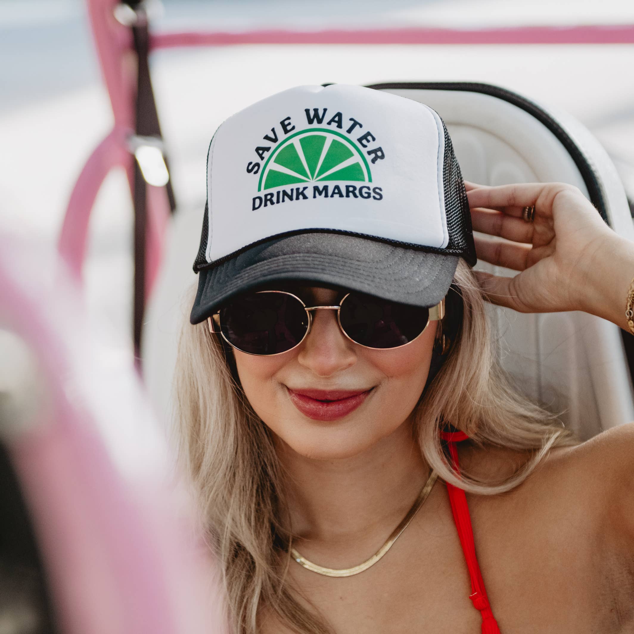 Handmade in Georgia- CandyCo Caps 100% polyester foam front, 100% nylon mesh back, Adjustable snapback. Trucker hats! Comfortable and adjustable—one size fits all! The trucker hat style is so on-trend and super flattering. This hat is the perfect accessory for your next girl's trip!