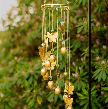 The Three Butterflies Wind Chime from Hopes Unlimited is a testament to our commitment to fair trade and sustainable practices. Crafted in India, this 19”x 4” wind chime is made of iron. Its upcycled design contributes to a low-impact transport, aligning with our vision for a kinder environment.