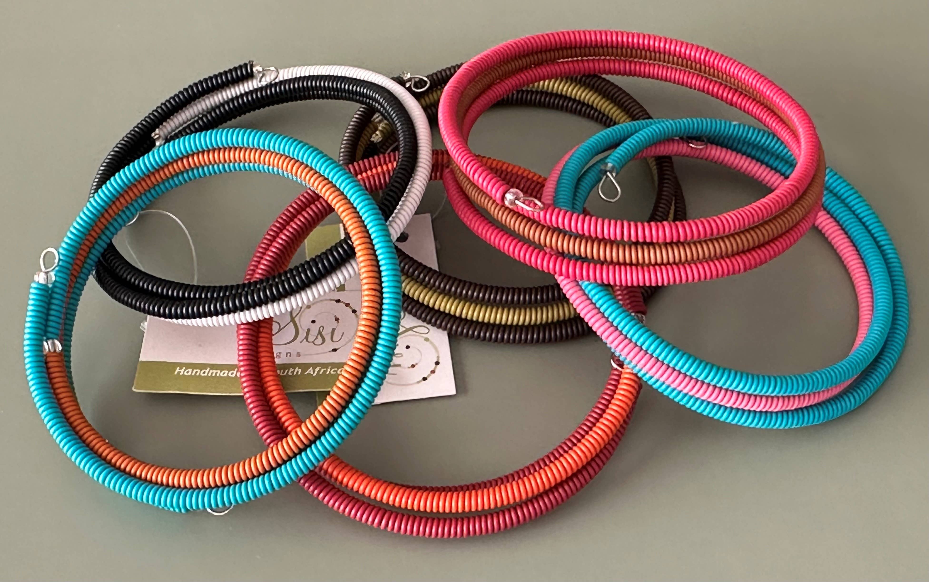 Color Tones: a variety of colors Hand made from Telephone wire Each piece is unique and the designs may vary Bangles can vary in width 1/4 The Zulu people of South Africa combine traditional weaving skills with contemporary design to create beautiful products and earn an income to support their families. This group has provided work for over 650 families since 2004.