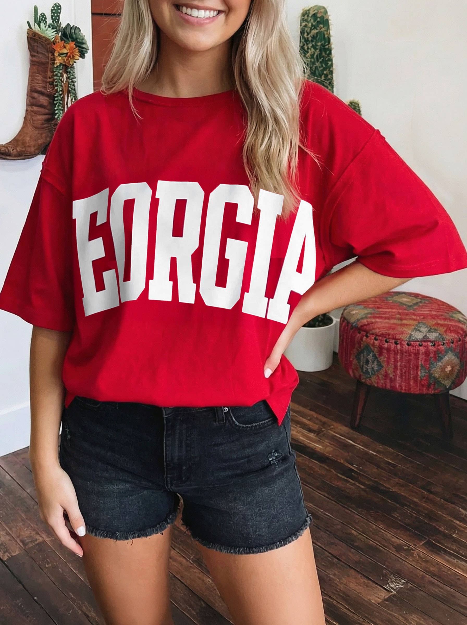 SKU: S_DTG/SPANGLE_WHITE_CC 1717_FRONT_Georgia Girl Red Black Made in United States Aesthetic: Casual Fit: Unisex Occasion: Everyday Weight: 17.01 g (0.6 oz)