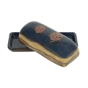 Add a touch of elegance to your table. Our butter dish is made from ethically sourced horn in Haiti. Mr Lafond and his team sand and polish the horn until a shiny surface is formed. Due to the organic nature of these pieces, the color will vary from ivory, tan, brown, black, or any combination of these colors. About the Artisan: All of our horn pieces are made by our horn partner, Mr. Lafond, and his team. Here's what he has to say about the importance of your support, "Vi Bella has been a great partner for my workshop. We want to thank all of the customers that support our work. Because of you we are able to employ 30 artisans all year round. We love that Vi Bella challenges us with new designs." Thank you for supporting Haitian artisans using traditional skills. Details: * 7.5"x4"x1". * Knife - 6". * Color will vary. Due to the handmade and organic nature of this piece, slight variations in color, shape, dimension, and texture are to be expected and, as such, are assets of the handmade aesthetic. Care: * Handwash only - do not submerge for long periods of time. * Food safe. * Not dishwasher, microwave, or oven safe.