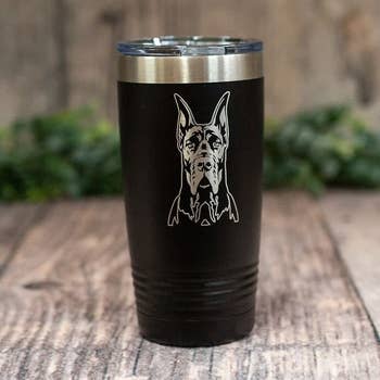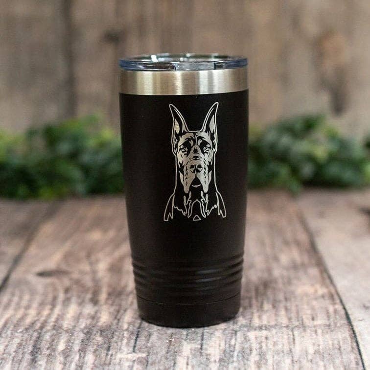 Enjoy your favorite drink on the go with 20 Oz SERENGETI Tumblers for Pet Lovers. Whenever you're spending time outdoors, having the right type of tumbler is essential for travel. The Doberman Tumbler - Travel Mug has a beautiful 3D artwork of the dogs. The artwork is realistic and the dogs and cats are slightly raised with the 3D printing German Technology. This will become your most favorite tumbler yet. It makes a perfect Gift for any occasion. Features: * 18/8 Stainless Steel, BPA Free * Double-wall Vacuum insulated * Keeps drinks hot for up to 8 Hours * Keeps drinks cold for up to 12 Hours * Car Cup Holder Friendly * Leak Proof Lid * No sweat Design * Durable High Gloss Finish * 3D printing of your favorite Dog For best quality and durability, we recommend hand washing only for your new tumbler. - This item is NOT microwave safe.