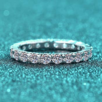 This gorgeous hand-textured ring features a sparkling row of carefully set white diamonds. Delicate and comfortable to wear, this solid gold diamond ring would make the perfect alternative wedding band or everyday ring to add to your stack! Details: - Available in 10k yellow or white gold, or 14k yellow, rose, or white gold - Your choice of either 5 lab-grown diamonds or responsibly sourced natural diamonds (.04 total carats) - 1.5mm hand textured band - Finish: polished Individually handcrafted just for you in Lacee’s beachside studio in Long Beach California.