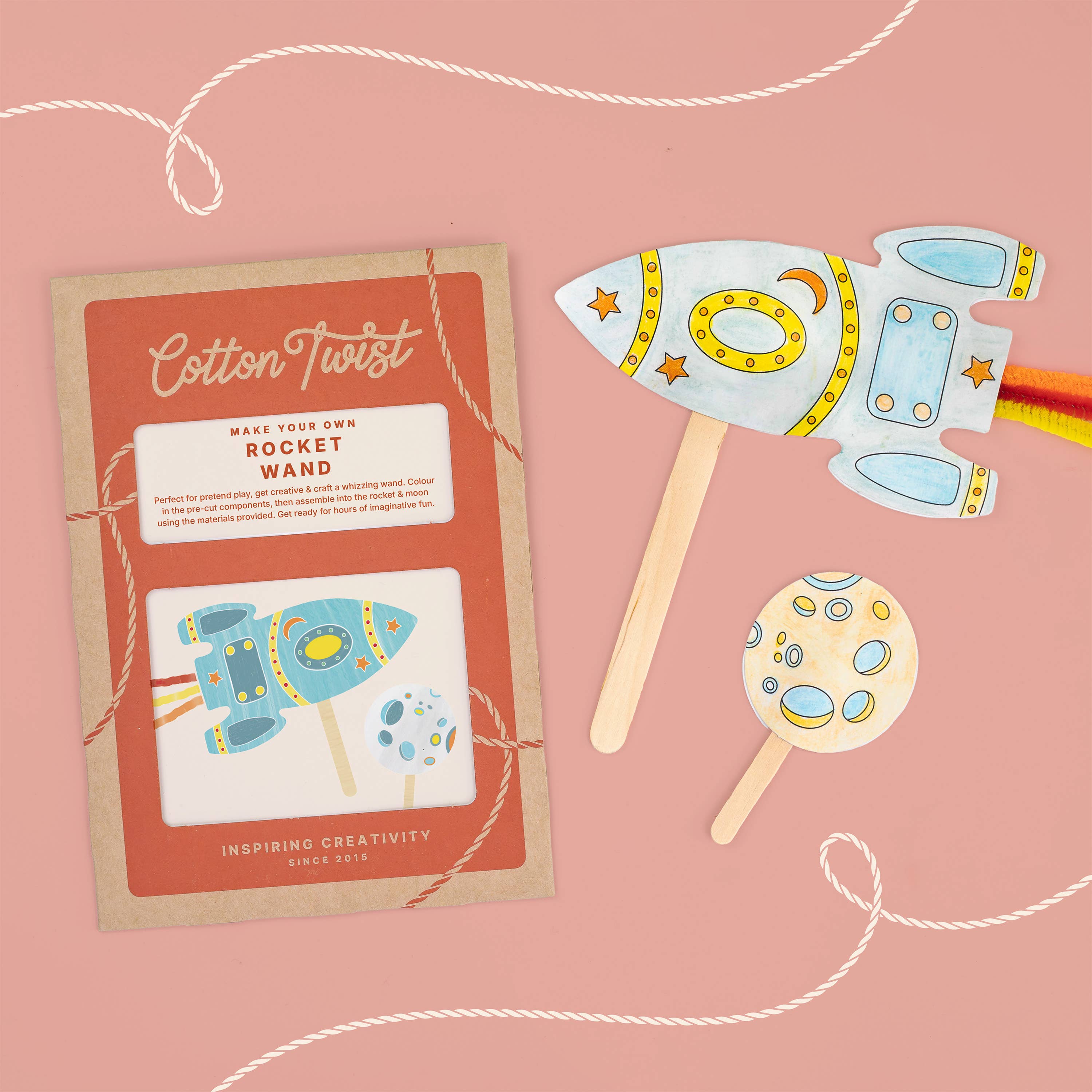 • Recommended for ages 3+ • Sustainable eco-friendly materials • Promotes fine motor skills • Perfect for till point add-ons • All materials provided • Ideal for party favours & stocking fillers • UKCA/UKNI/CE tested & FSC certified Children can colour the unicorn cut outs with their chosen pattern, then it's time to construct their wand. Once the stick & ribbons are taped on, the unicorns can be stuck together. Attach the natural beads to the ribbons for additional effect. Then it's time to spread some magic with your very own unicorn wand. In a bid to banish plastic from our homes, Cotton Twist products are lovingly assembled by hand, & all components are as good as we can possibly make them. MATERIAL - unicorn push card, wooden stick, glue dots, ribbons, natural beads, circular stickers DIMENSIONS - each pack comes with a recyclable kraft envelope measuring 16.5cm by 11.5cm together with an A6 printed instruction card