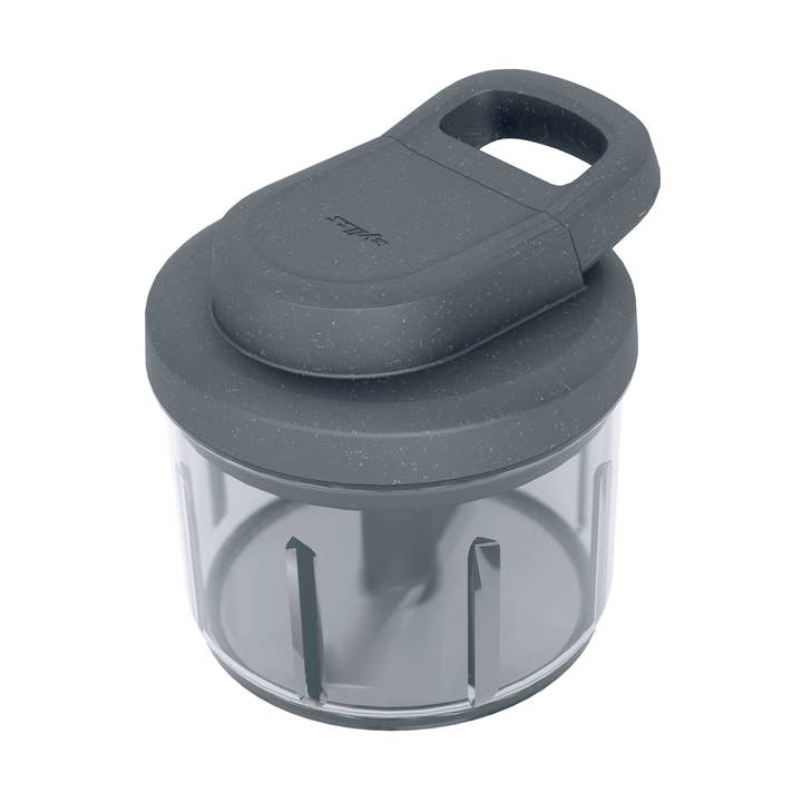 The Zyliss Zick Zick 3 Food Chopper makes chopping quick and effortless. Its sharp stainless steel blade rotates with every press, delivering smooth, even cuts for vegetables, fruits, nuts, herbs, cheese, and chocolate. The plunger extends and rotates wiper blades for consistent results with minimal effort. Chop directly into the built-in container with measurement markings, or remove the base for cutting board use. Designed for comfort, it provides a secure grip and total control. Cleaning is easy—the blade, wiper, and container are all dishwasher safe. With a simple twist, it locks for compact storage. From fresh salsa to finely chopped chocolate, this versatile chopper is built for daily use.
