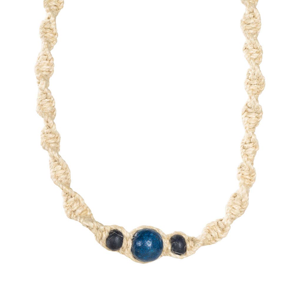 Large Blue And Green Wide Hemp Necklace