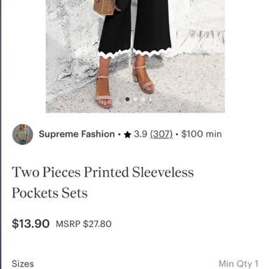 Two Piece set with ric rac trim arrived and the black trim had transferred to the tan fabric. The trim was not sewed completely and was crooked. All items purchased are cut on the small side. I will not be purchasing from them again.