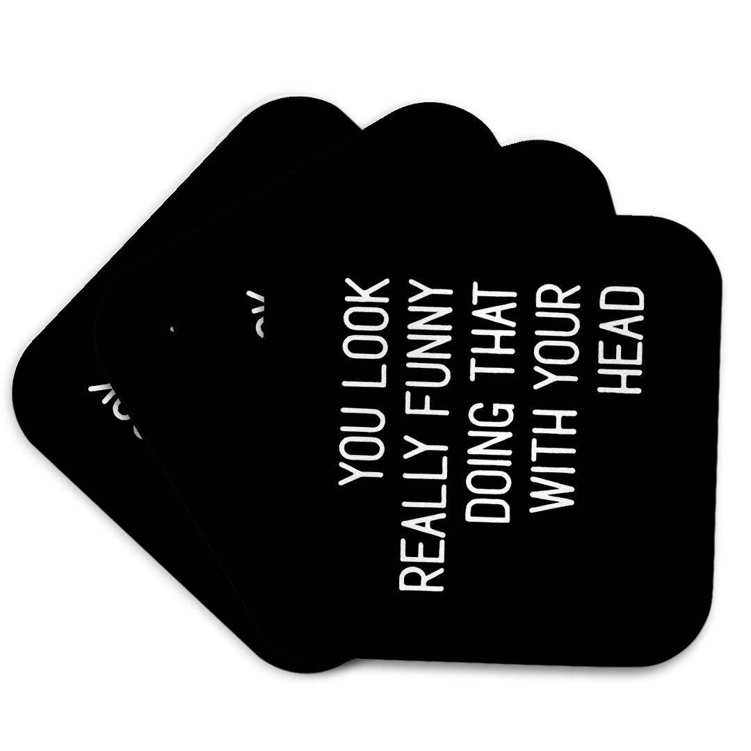 4-Pack of Drink Coasters. Enjoy your favorite drink and entertain your friends with these fun drink coasters! They feature a high-gloss finish and a cork-wood back to prevent sliding and protect your table. Start a collection. They make great gifts. 4-piece set High-gloss MDF top Cork back to prevent sliding 3.75" x 3.75" $25