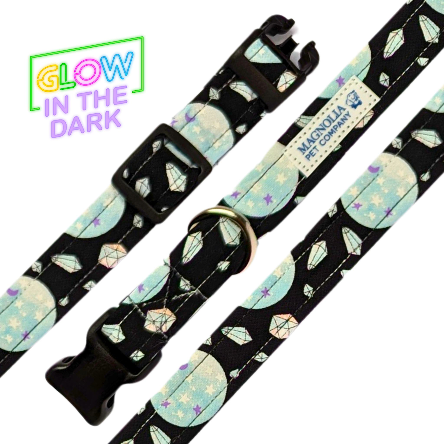 Add a touch of spooky charm to your pup’s look with our Spooky Halloween Spider Web Dog Collar! Crafted from high-quality, durable purple fabric, this collar features an intricate pattern of white webs that glows in the dark. Perfect for dogs who love to stand out, this collar blends playful design with practical functionality. * Perfect for holiday celebrations, photo shoots, or simply adding a touch of festive flair to your pet's everyday attire. * Nylon collar wrapped with 100% high quality reinforced cotton. * Handmade in the USA.