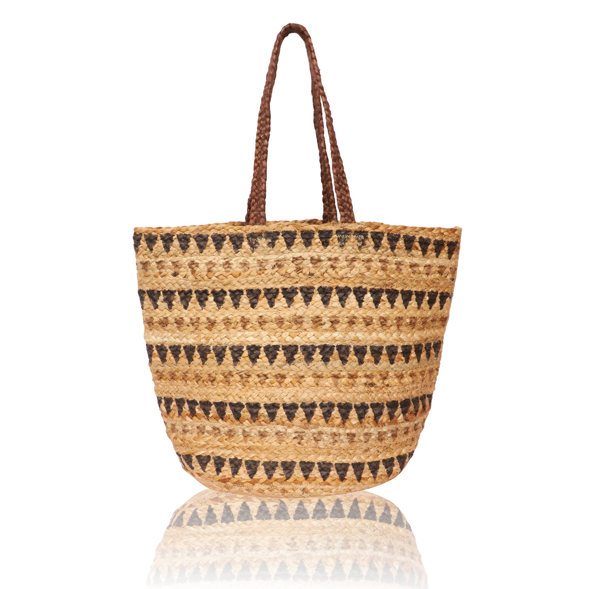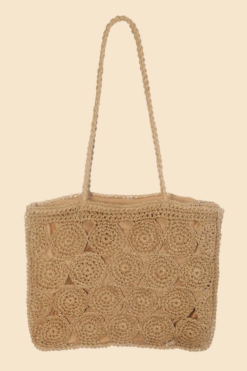 * Multipurpose Handheld Tote * Bamboo Top Handle with Crochet Detailing * Hand Embellished front * Long Adjustable Crossbody Strap * Magnetic button closure, Metal feet * Made in hand-woven jacquard with lurex details, lined interiors with zip pocket and a mobile pocket * Size: 16" x 9" x 7"