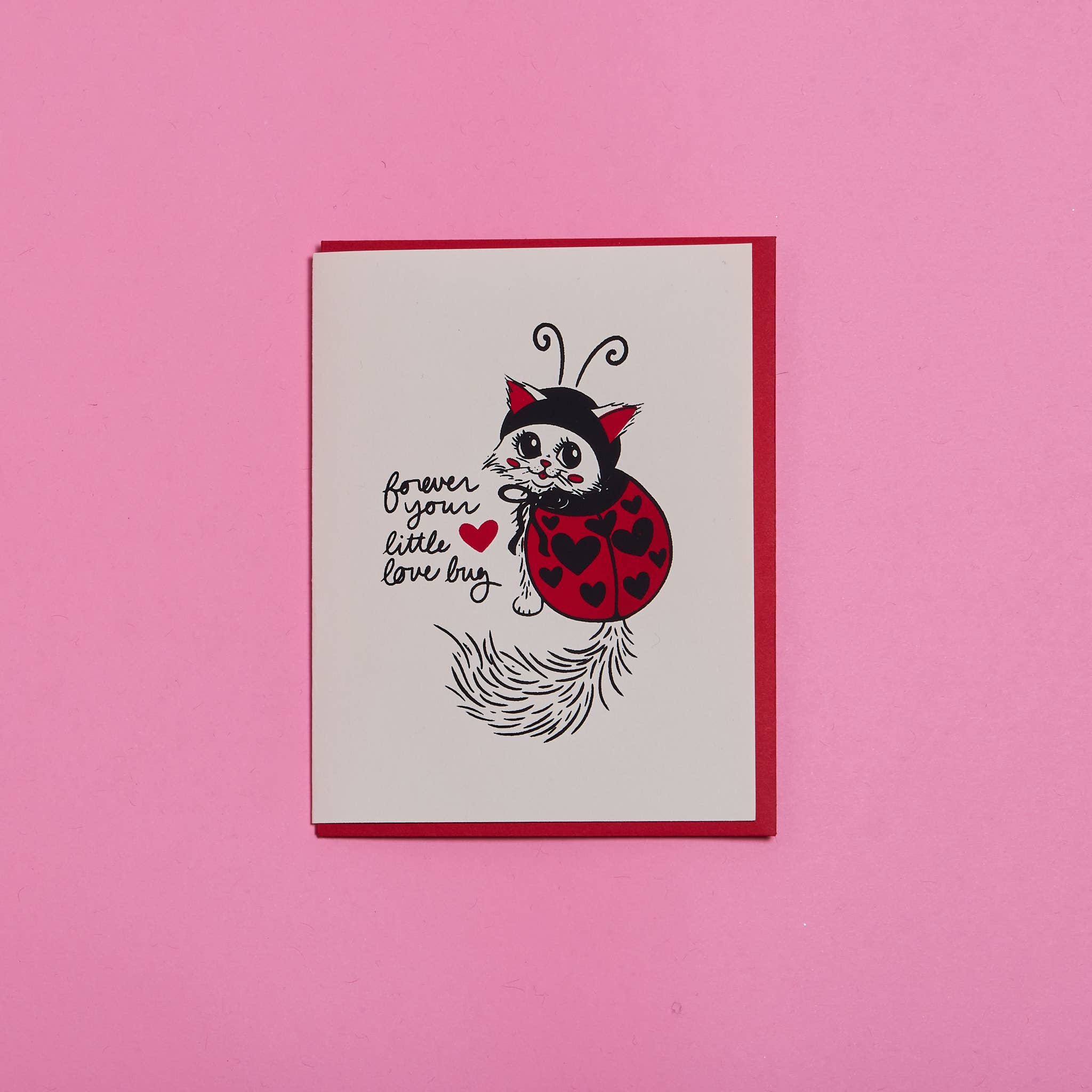 "Cute Cupid” Greeting Card + blank inside + card size: 4.25 x 5.5” A2 + 130 lb. soft white FSC 100% recycled heavy card stock paper + printed in Portland, OR + packaged with envelope in cello sleeve All work and photos ©PAPER PUFFIN Art by. K.CARLSON