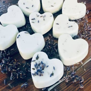 Floral Lotion bar hearts - come in a 2 oz tin Scented with lavender essential oil Lotion bars are solid lotions that are designed to melt when rubbed on skin due to the body's temperature! Ingredients: Beeswax, coconut oil, mango butter, arrowroot powder, essential oil Net wt: 1 oz