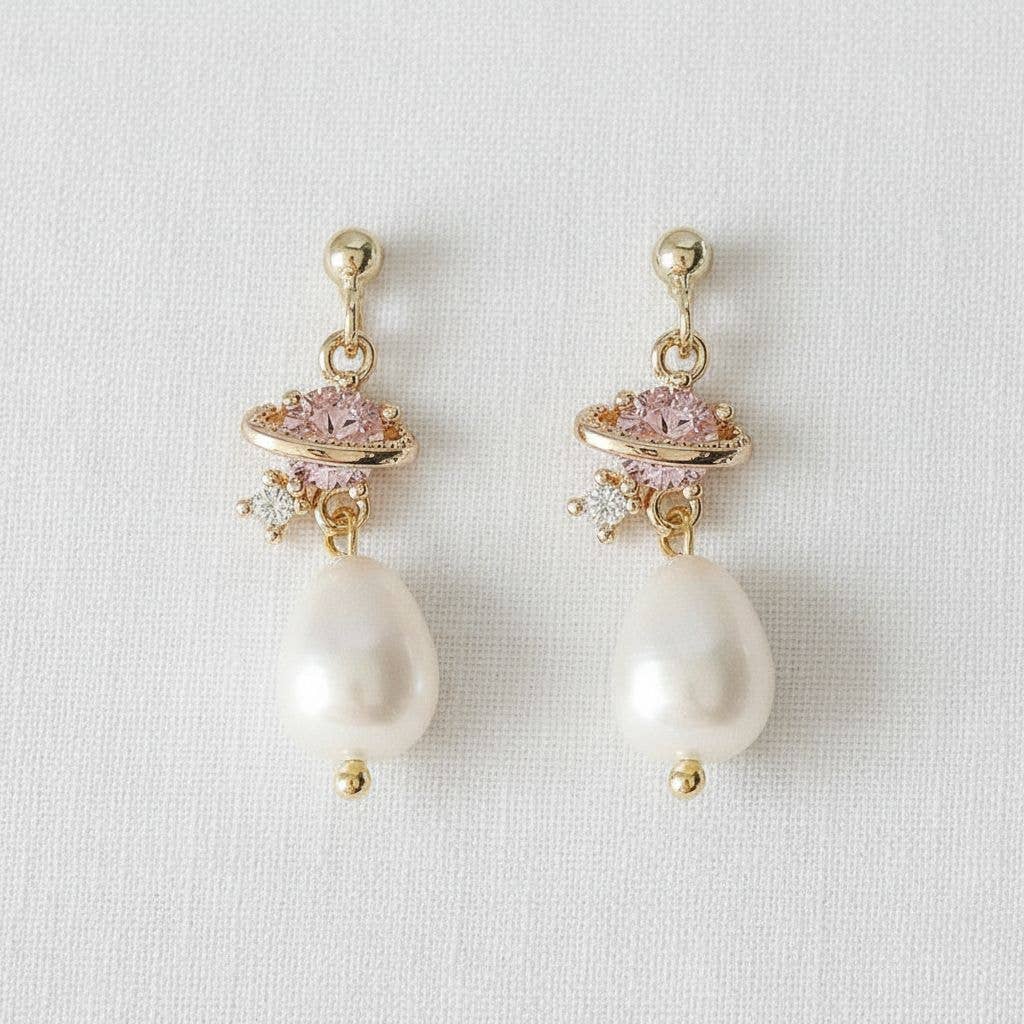 These gorgeous rhinestone and faux pearl dangle earrings make the perfect bridesmaid gift. They hang about 2.25" from the lobe and measure about 0.50" at their widest point. The fishhooks are 18k gold plated and nickel free. These earrings are lightweight and should be comfortable for all day wear.