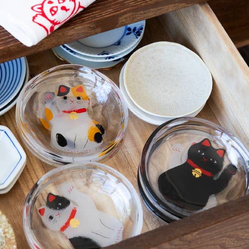 Cat paw glass in the design tabby with a small pink paw at the base. A lovely addition to your daily table, it’s sure to bring a touch of peace and happiness to your home. W2.79" x H5.59" (W75mm x H110mm) Made in Japan