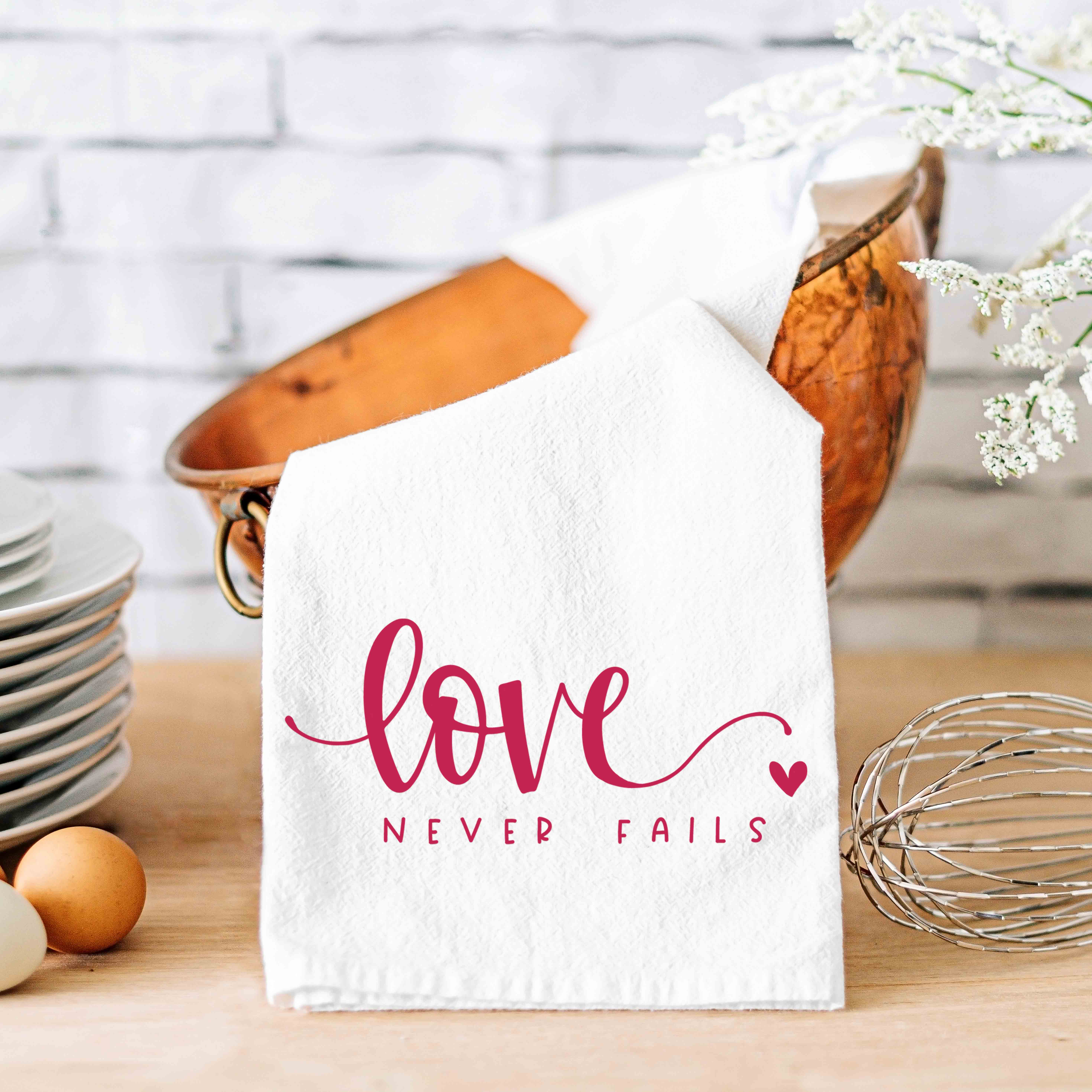It's all in the details! Our Kitchen Collection is sure to add warmth and personality to any space. All our pieces are custom designed and handcrafted from the highest quality materials. DETAILS • 21" x 28" • 2 Fabric Options - White & Natural • Stonewashed 100% Cotton • Lint Free fabric • Hemmed on all sides • Corner loop for hanging • Quick absorbency CARE • Machine wash cold with like colors. Lay flat to dry. • Iron as needed. • Do not bleach.