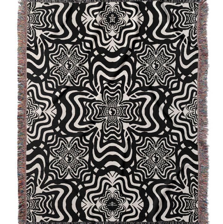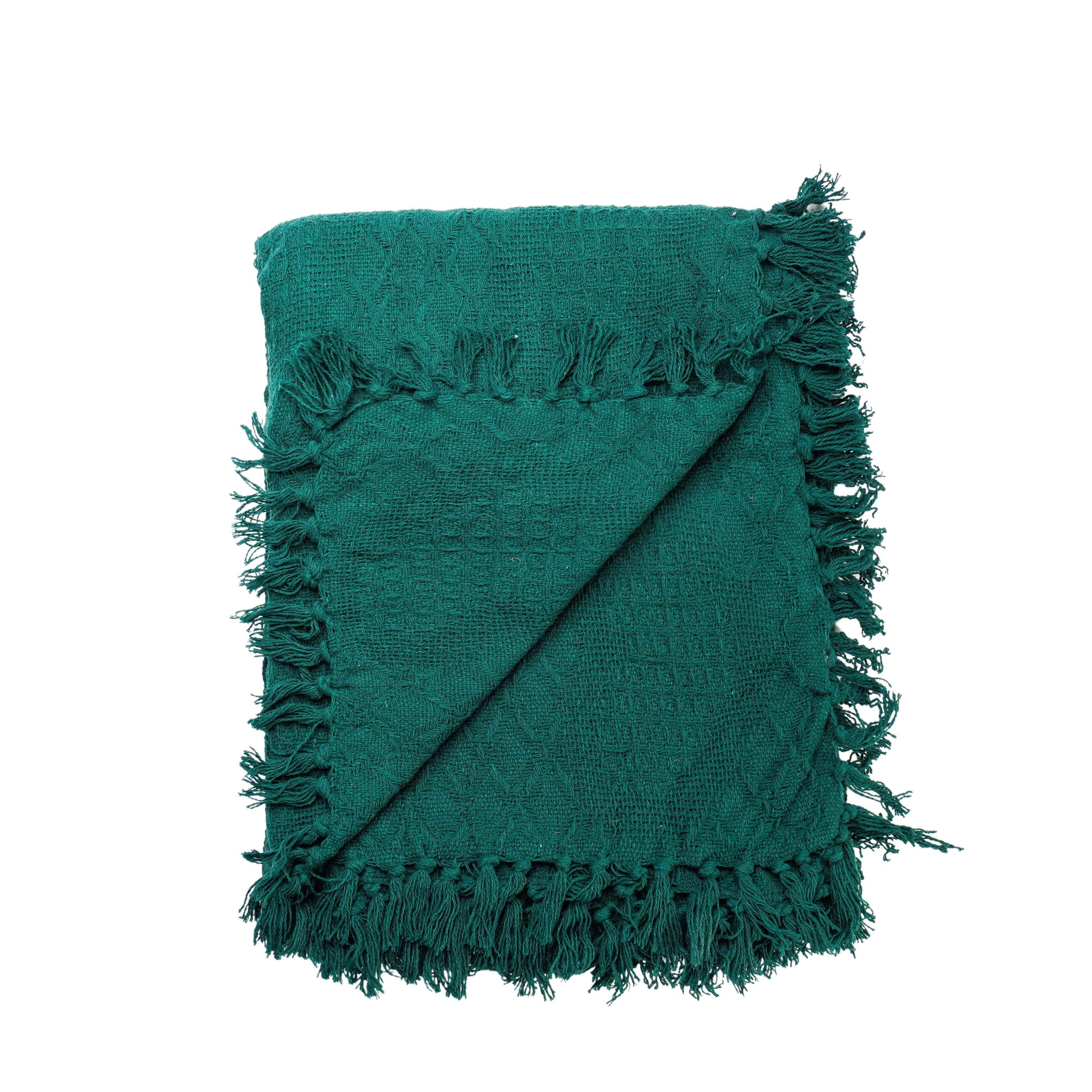 IVI - Abstract Jacquard Woven Blanket - Black Green Colors may vary from photos shown. Large: 60" x 80" Medium: 50" x 60" Our premium natural cotton throws are lightweight and super soft to touch, beautifully textured and wonderfully cosy. Made from 100% cotton, our throws boast the finest quality yarn stitched in a thermal weave to create a breathable, luxurious finish. Perfect for bed or couch, this classic blanket adds a great finishing touch to any interior. Our made on demand blankets are both odor and stain resistant, and easy to maintain. They resist wear and tear, as well as being hypoallergenic and ideal for sensitive skin. * Odor and stain resistant * Hypoallergenic, machine washable and low maintenance * Colorful fringe