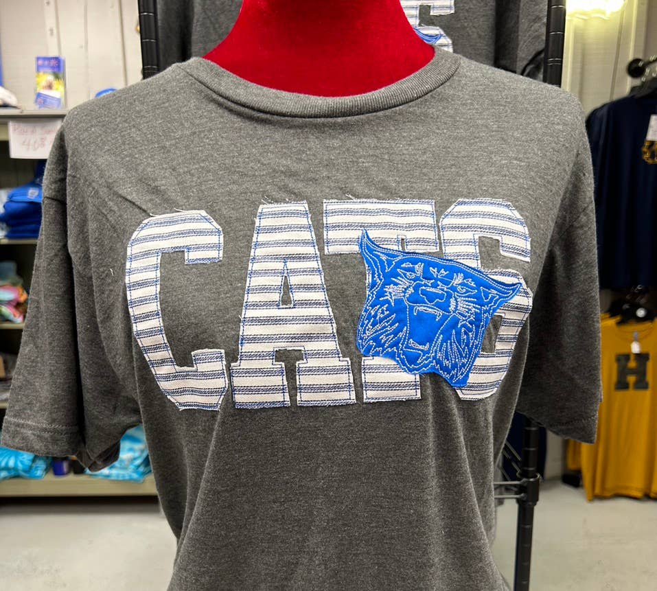 LOOKS BEST WITH 4 LETTERS OR LESS: Finally. game day! Show your school spirit while wearing our bespoke custom-made game-day tee. Deep heather grey Unisex sizing Pre-shrunk Authentically designed and handcrafted by miss monogram. Hand-cut applique using premium fabrics. Each shirt is as unique as the person making it. Machine wash cold. Hang to dry. Please let us know in the comment section what letters, mascots, and school colors. ALL CUSTOM SCHOOL SHIRTS ARE NON REFUNDABLE AND NON RETURNABLE.