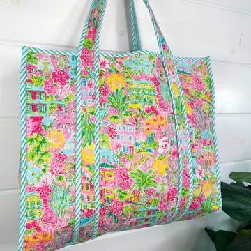 Quilted Tote Bag | Large Shopping Bag | Southern Town Tote