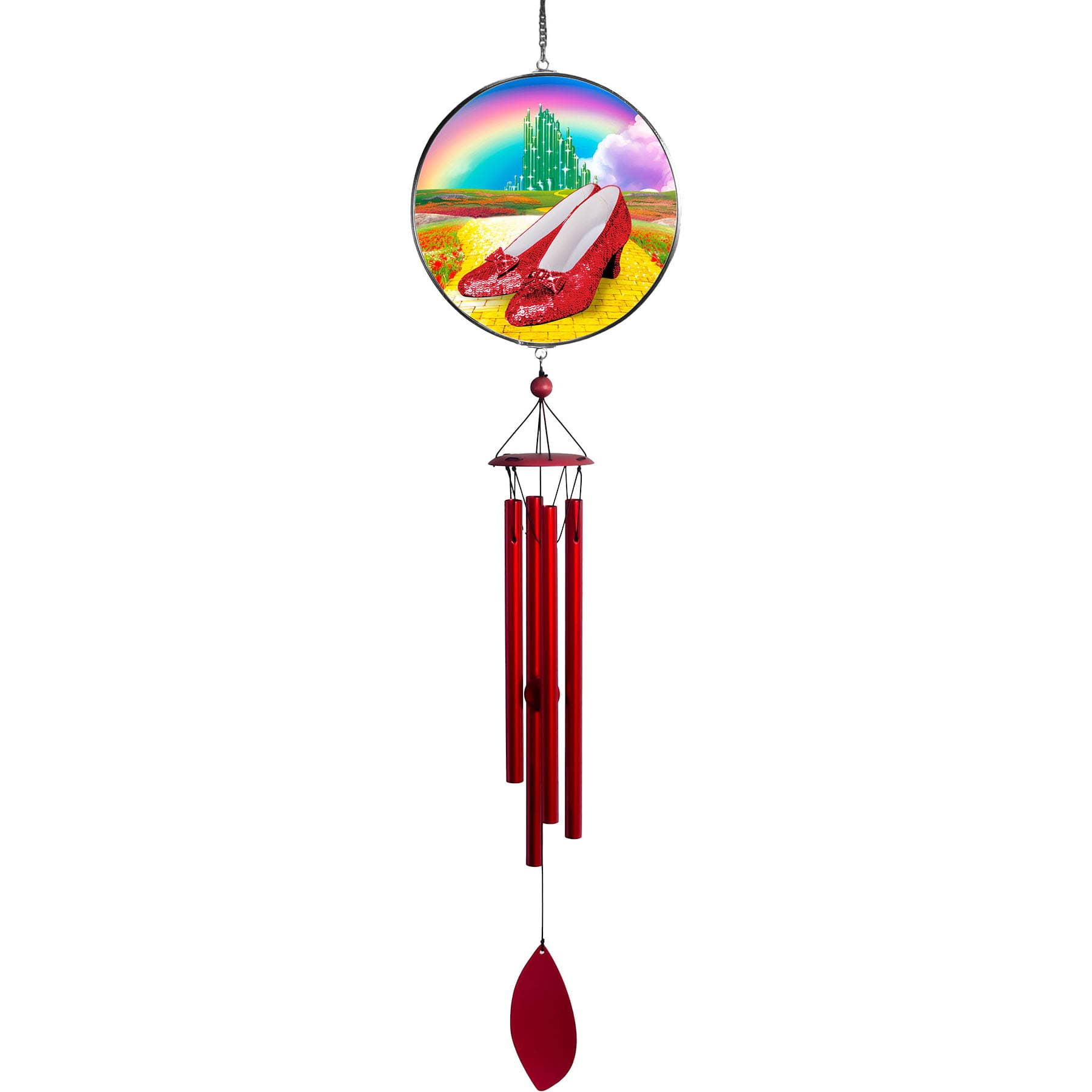 Add a little charm to your yard and lovely music to your ears with this metal wind chime! It is 37" long and features a coordinating cutout charm at the bottom. This wind chime comes ready to hang.