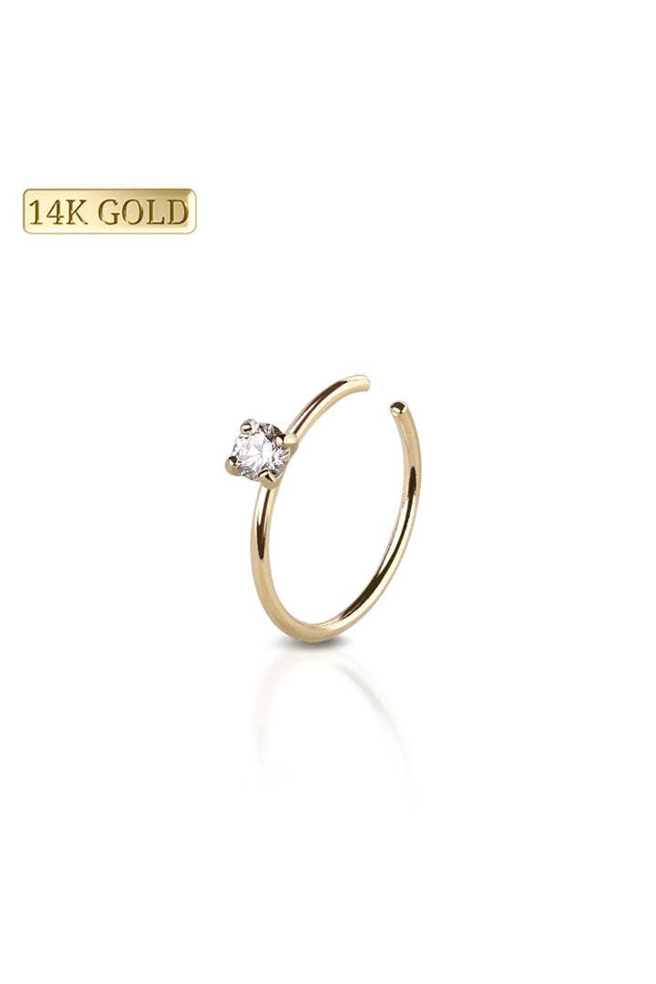 14 KARAT GOLD SIDE GEM PAVED FRONT-HINGED SEGMENT RING FOR SEPTUM, HELIX, TRAGUS, CAPTIVE Product code: KTRS002 Thickness: 16GA (1.2MM) to 20GA(0.8MM) Length: 1/4"(6MM) to 3/8" (10MM)