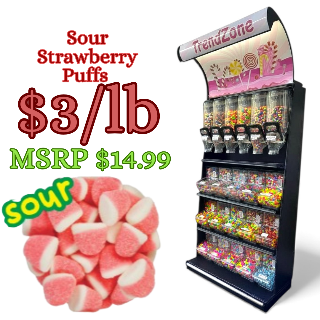 $3/lb | Suggested Retail: $14.99/lb These juicy Sour Blue Raspberry Puffs gummies are a customer favorite! Sour & Sweet, chewy, and colorful, they look amazing in any bulk bin, gummy wall, or display rack. Perfect for candy shops, party stores, or refill stations. 📦 Each bag: 1000g (2.2 lb) 📦 Case: 12 bags (26.45 per lb all-pack) ✅ Eye-catching resealable packaging ✅ Great for bulk candy bins or by-the-bag resale ✅ Long shelf life and strong margins These move fast and bring color and fun to any display. A must-have in your bulk candy lineup! • Made in China