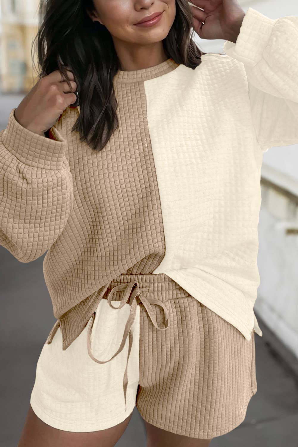 Ultra-soft fuzzy knit texture Relaxed open-front cardigan High-waist drawstring lounge shorts Warm, comfy, and lightweight Perfect cozy-chic loungewear styling A cozy fuzzy lounge set featuring an open-front cardigan and matching high-waist shorts. White crop top not included. Comfortable, warm, and easy to style for relaxed at-home or casual streetwear looks. Ideal for boutiques offering soft, stylish, and cozy fall–winter loungewear.