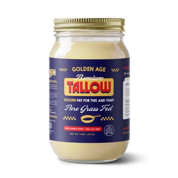 Farmstead Culinary Tallow Rendered with care from 100% grass-fed beef suet, our Farmstead Culinary Tallow is the purest expression of heritage cooking. Once a staple in every farmhouse kitchen, tallow was prized for its golden richness, clean flavor, and remarkable stability at high heat. We’ve revived this timeless ingredient for the modern cook who values simplicity, nourishment, and tradition. Uses & Benefits • Perfect for frying, sautéing, and baking — a natural alternative to seed oils • Rich in vitamins A, D, E, and K for a deeply nourishing fat • Ideal for pie crusts, roasted vegetables, cast-iron cooking, and even candle-making • Naturally shelf-stable and reusable without refrigeration Crafted the Old-Fashioned Way Our tallow is slowly rendered in small batches from grass-fed Idaho cattle, strained to silk-like purity, and poured by hand into glass jars. No additives. No shortcuts. Just the clean, savory essence of the farmstead kitchen — the way your great-grandmother would have known it. Ingredients: 100% Grass-Fed Beef Tallow Origin: Sourced from small U.S. family farms. 🕊️ Bring the warmth of the farmhouse back to your table — one spoonful at a time. -10 oz