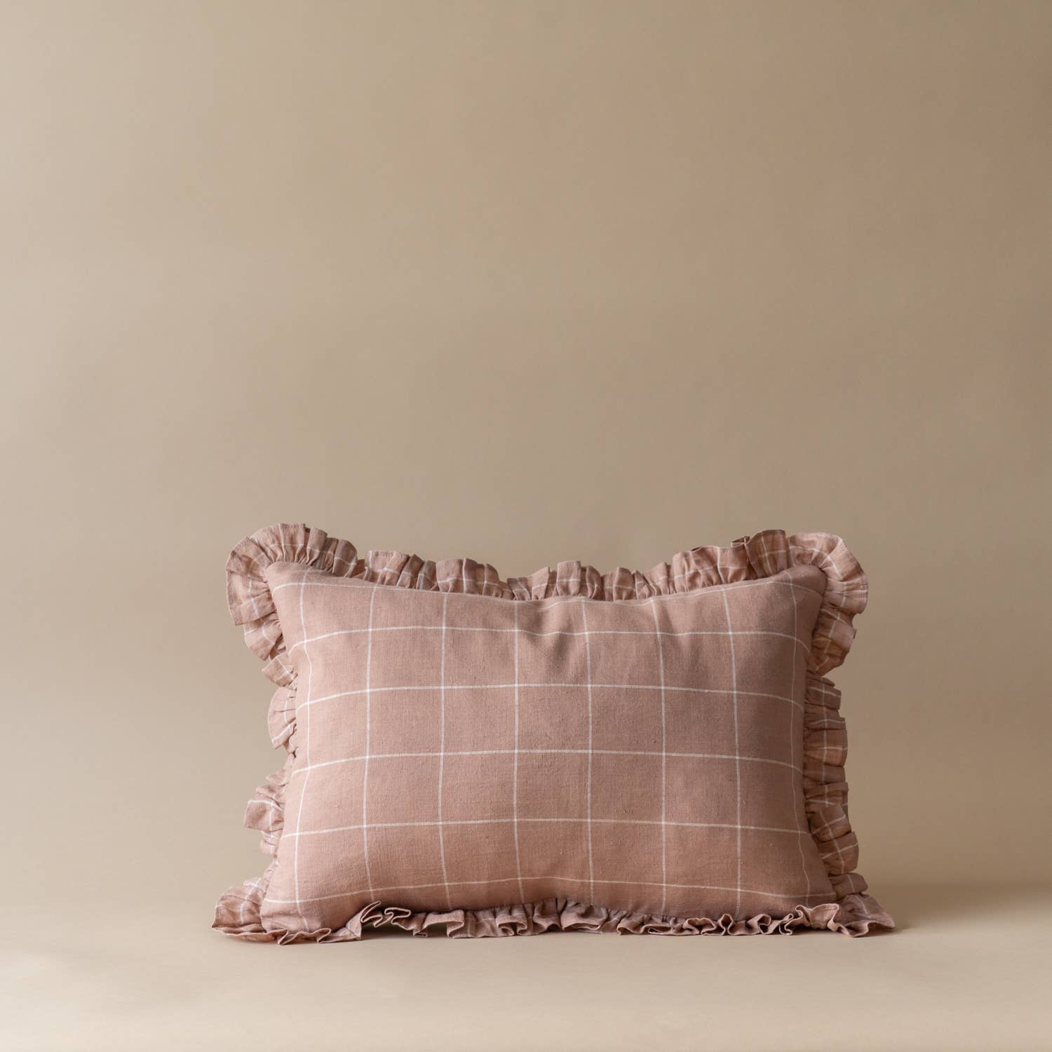 Style this neutral ruffle pillow cover with any print and pattern for a an added touch of cottage core and feminine whimsy. A blend of super soft linen and cotton in a neutral beige make this an easy addition to any living space. Specifications: -cotton/linen blend -hidden lap closure with YKK brass zipper -fully lined with 100% cotton -measures 25" x 25" flat -fits 20" x 20" insert "with Insert" option: includes premium feather/down pillow insert Care: -spot clean only with cold water and mild detergent -lay flat to dry -we do not recommend machine laundering for this item Designed and produced by Rug & Weave, in Canada.