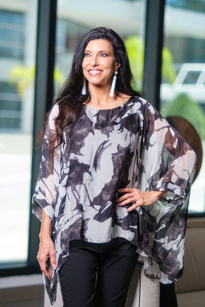 A slimmer cut kaftan to live in! You asked, we delivered! A slimmer, shorter version of our super popular Sofia is perfect for those that want an easy fit, but not as much fabric. The Island Fantasy print will transport you to the island of your dreams! The simple hem with slightly longer points on the sides is always flattering. Washable silk with a sheer ¾ sleeve gives you the arm coverage you love. The soft viscose lining feels as comfy as your favorite pajamas, so you will look and feel amazing! Always appropriate day or night you can dress up with a more luxe pant or down with your favorite jeans. Made in Italy. • Scoop Neckline • ¾ Sleeve • One size fits most (REALLY!) *2 – 12/14 • Machine wash cold, delicate, with like colors. Lingerie bag recommended. Hang or lay flat to dry. Disclaimer: Please note that each item is individually crafted and due to the nature of repeating patterns and cutting process, placement of colors may vary from the photo depicted.