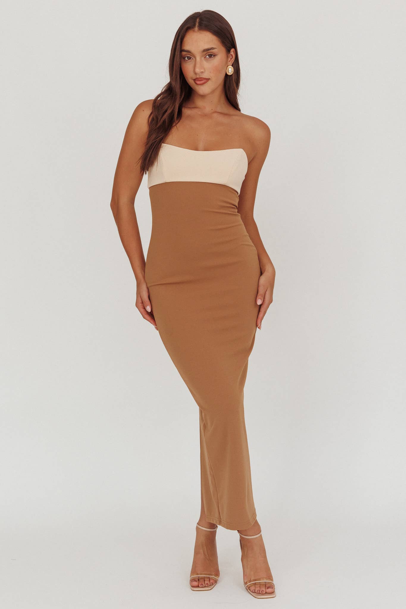 The essential nude Amina is a power mesh knit midi dress. With slip dress styling, her straps are adjustable and she's fully lined. * Nude * Midi length * Fitted silhouette * Adjustable straps *