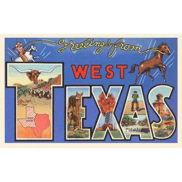 A rainbow of howdys! Size: 4" x 6" Paper: 150# Bamboo Cover. The back includes space for a note and address. Suitable for mailing. Designed in Texas. Printed in California. Ships from Austin, Texas.